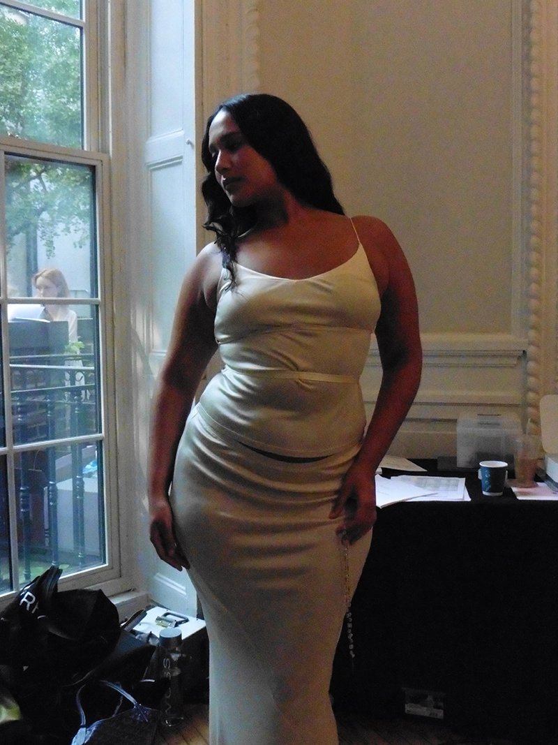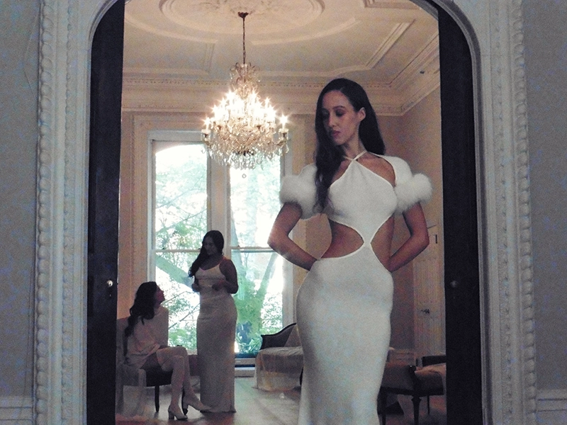 Mother Sauce orchestrated a multisensory production of photo, film, and fashion, culminating in an experiential show held at the historic Peterson House, home to the Center for Modern Psychoanalytic Studies. Drawing from the collection’s deep references to early 20th-century Expressionism, the flapper era, and the sinuous elegance of Art Nouveau, the show unfolded as a salon-style gathering. Guests entered the candlelit parlor of a West Village brownstone, where the air was perfumed with lit beeswax candles and the notes of live jazz being played by a band.