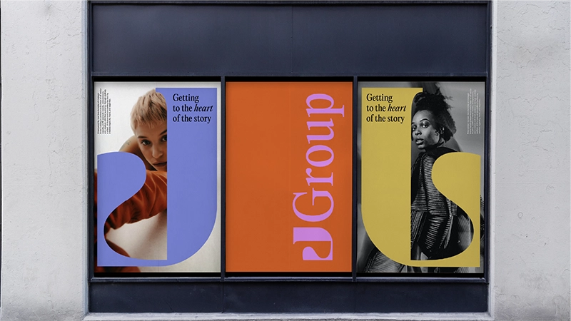 We set out to capture the duality at the heart of JGroup's work: the polish of legacy media and the pulse of what’s next. The result is a visual identity that’s both cosmic and classic. The typefaces used are referential to classic editorial type, with serif forms that harken the agency’s deep roots in print journalism and its mastery of traditional earned media. But the logo's shapes are softened with midcentury curves reminiscent of 1970s space-age retrofuturism. This design era embodied wide-eyed optimism and ambitious technological innovation, quite literally reaching for the stars. That ethos and its aesthetics felt deeply aligned with JGroup's evolution: an agency grounded in the rigor of traditional PR, now expanding its orbit to include social strategy, influencer relations, and cultural storytelling.